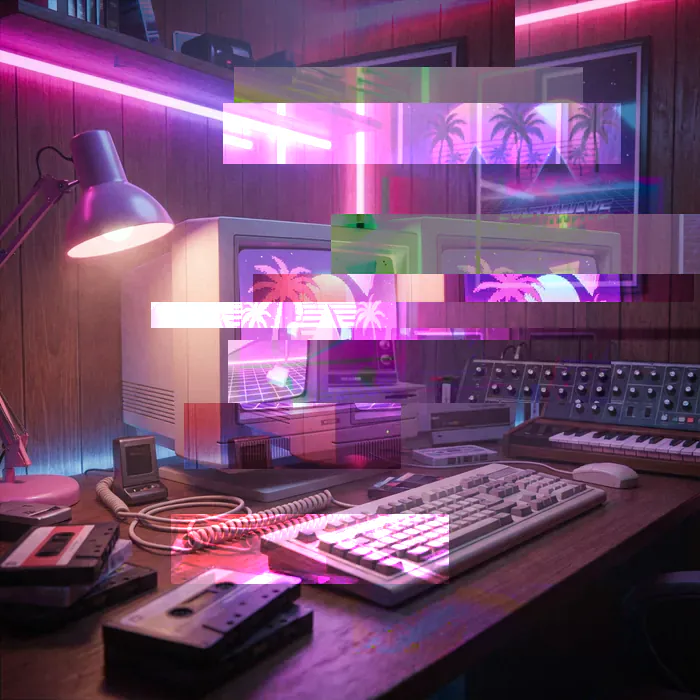 Explore arte glitch impressionante criada com nossas ferramentas. Arraste o controle deslizante para comparar os efeitos originais e glitch.